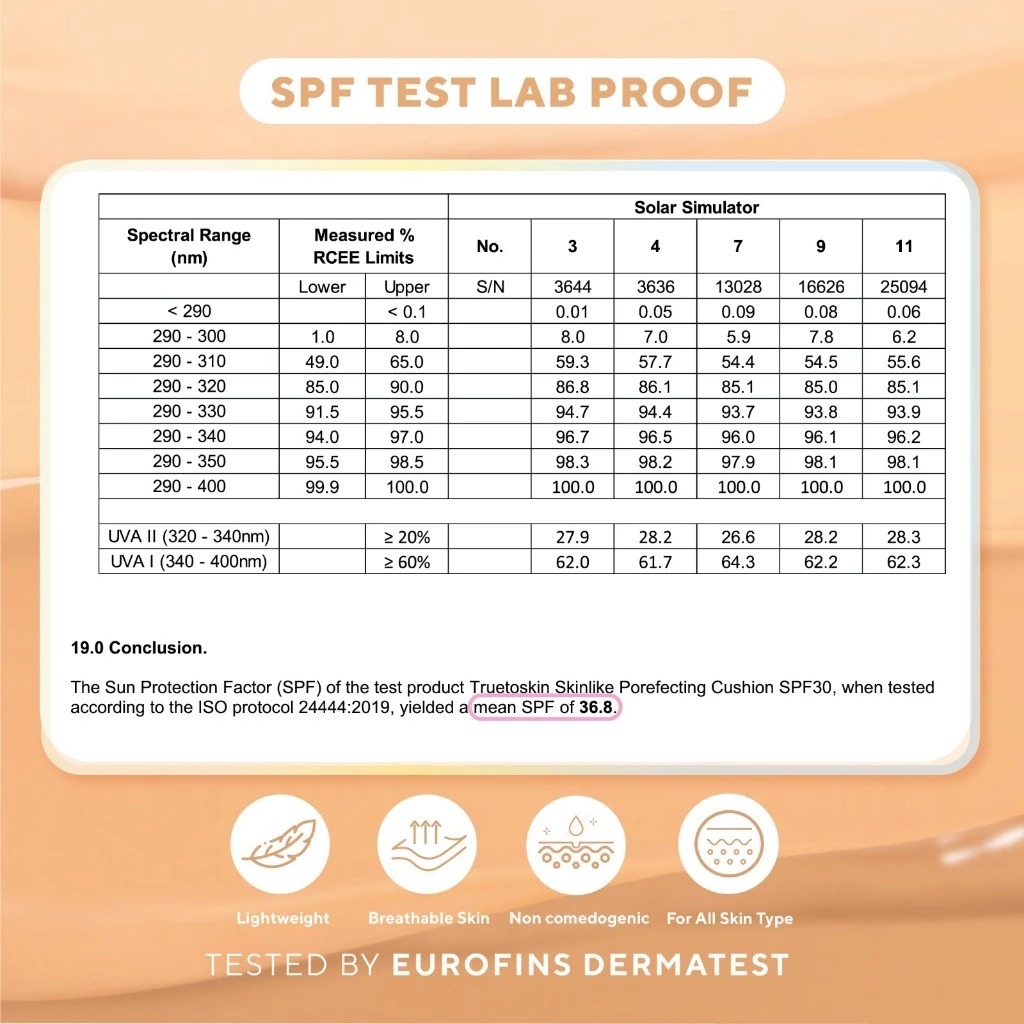 [ BEST DEAL ] True to Skin - Skinlike Porefecting Cushion SPF 35 PA++++ Medium to High Coverage Satin Matte Finish Lightweight