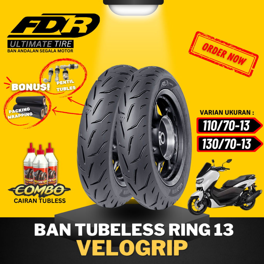 [PAKET SEPASANG MURAH] BAN FDR TUBELESS VELOGRIP RING 13 / BAN LUAR FDR VELOGRIP RING 13 ( 110/70-13 / 130/70-13 ) / BAN MOTOR NMAX / BAN N-MAX TUBELESS / FDR XR EVO RING 13