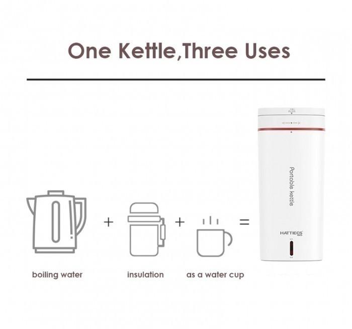 TERLARIS HATTIECS PORTABLE ELECTRIC KETTLE 500ML WATER BOILER STAINLESS STEEL PUTIH