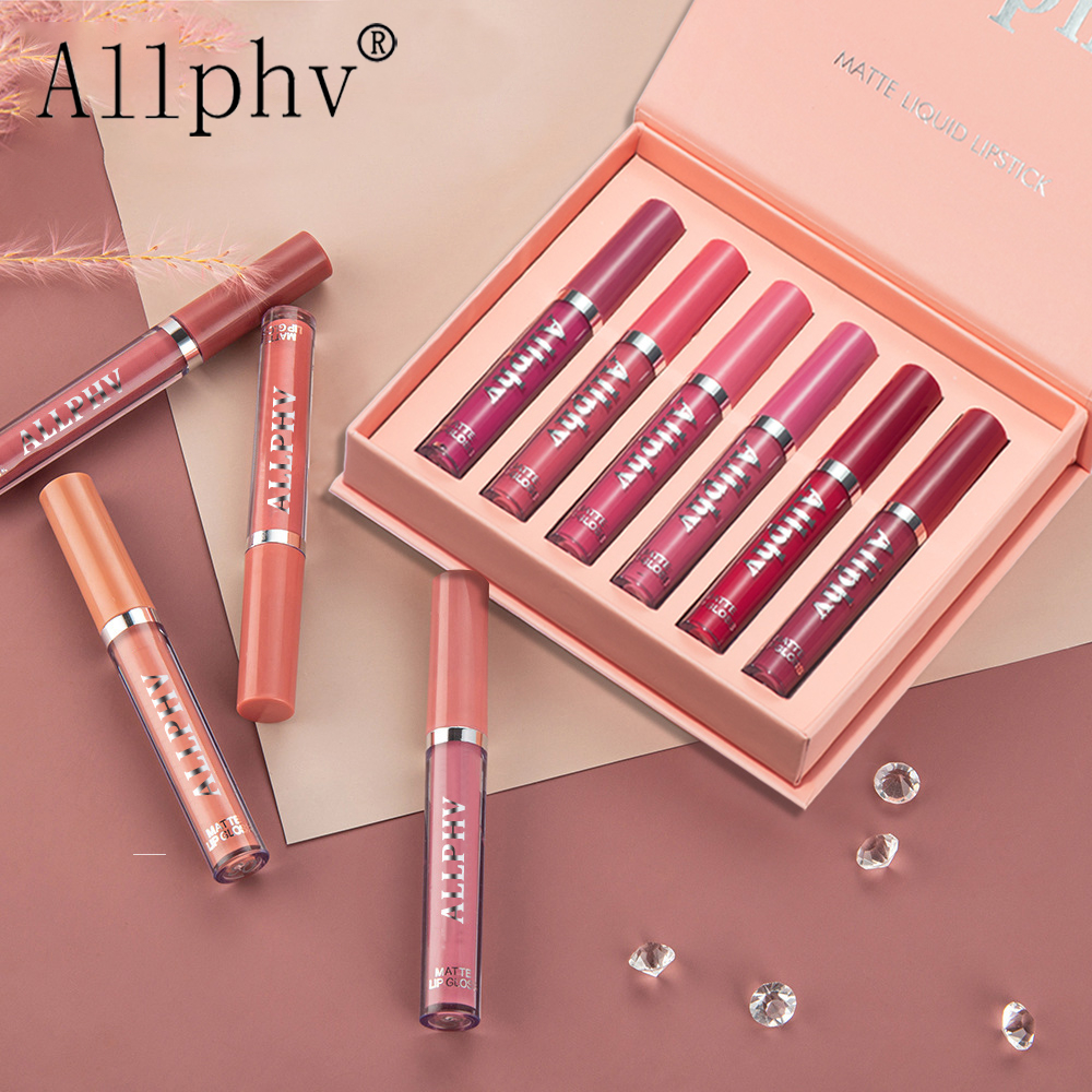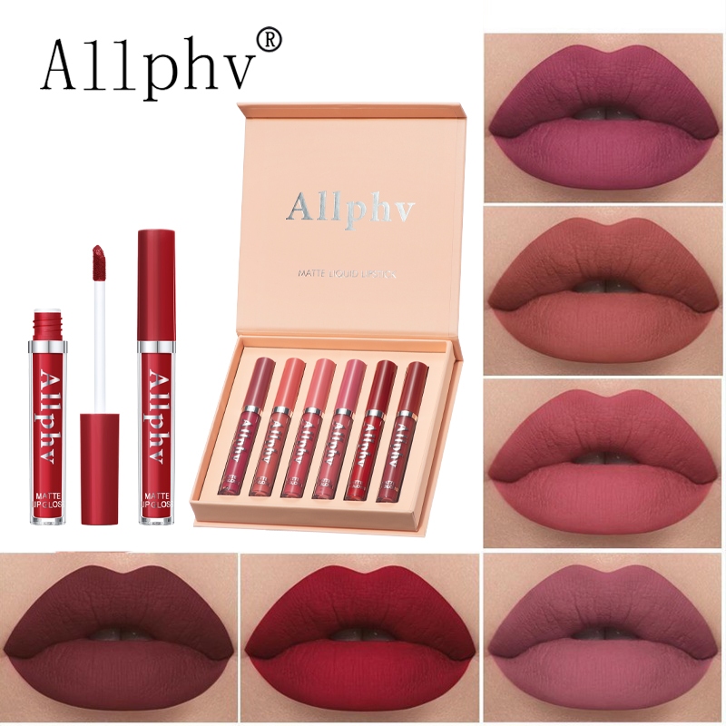Allphv Lipstik Matte Liquid Longlasting Waterproof Non-Stick Cup Lipstick Velvet Matte Makeup Set 6pcs Bibir Lembut Tahan Lama