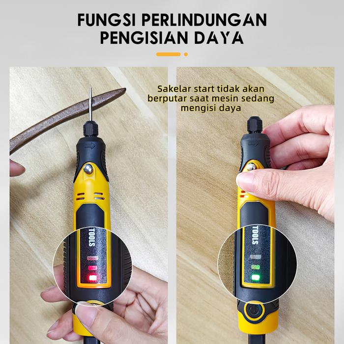 PROMO TERBATAS SOARFLY MINI GRINDER SET 57PCS GERINDA BATERAI CORDLESS AKSESORIS KUNING 500MAH