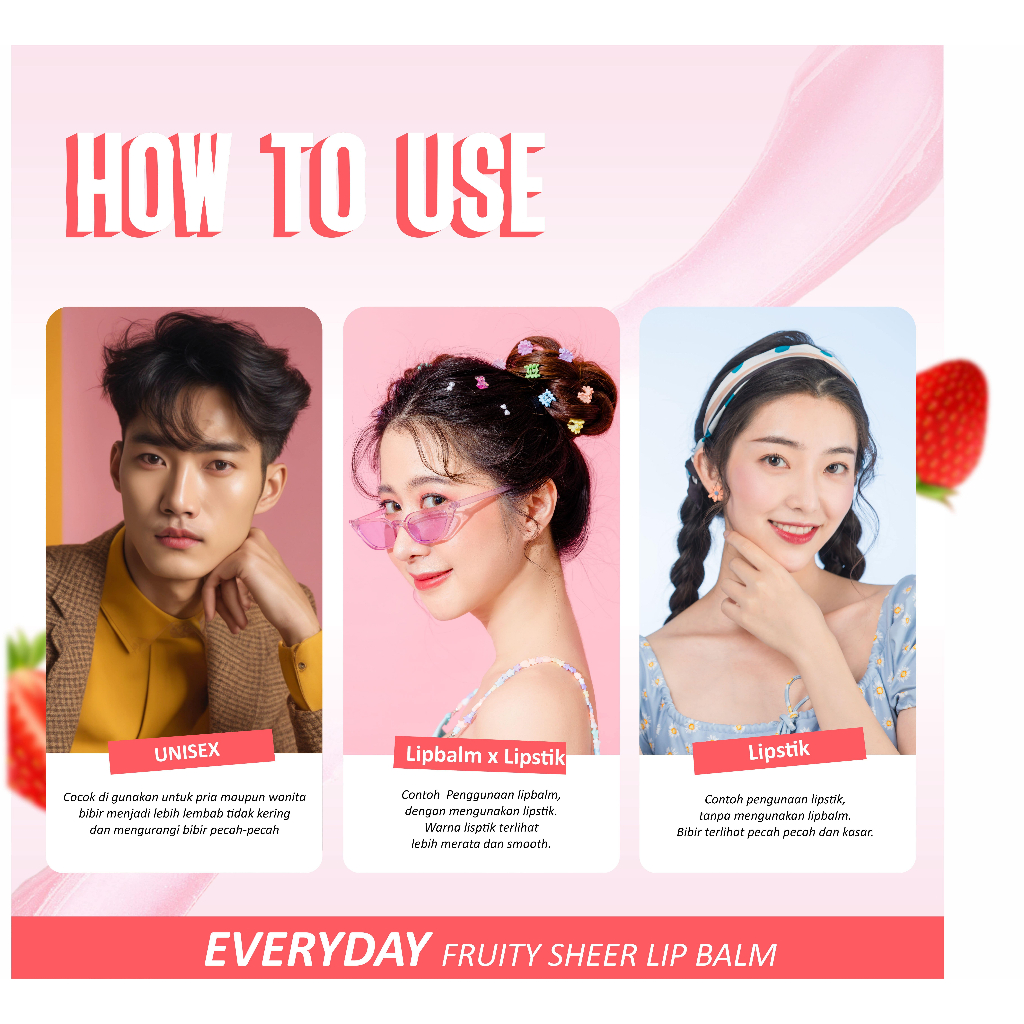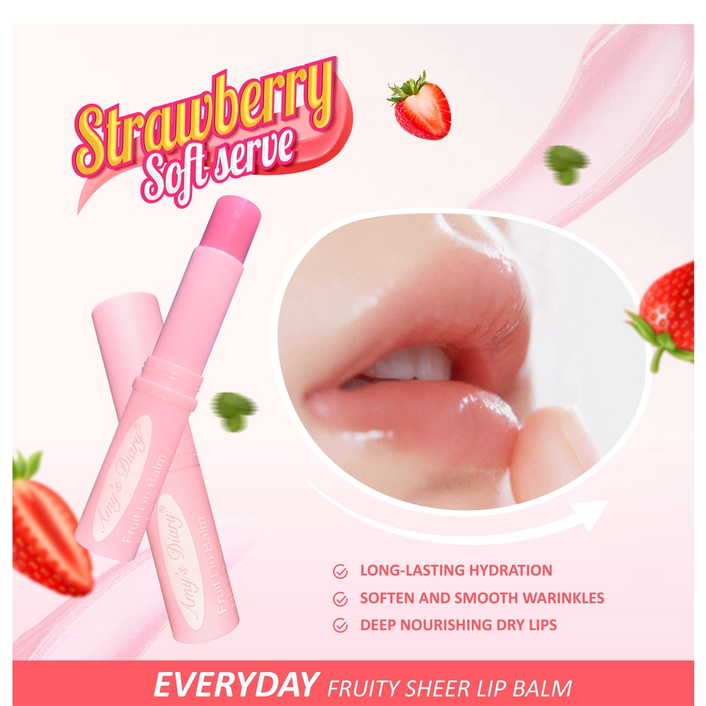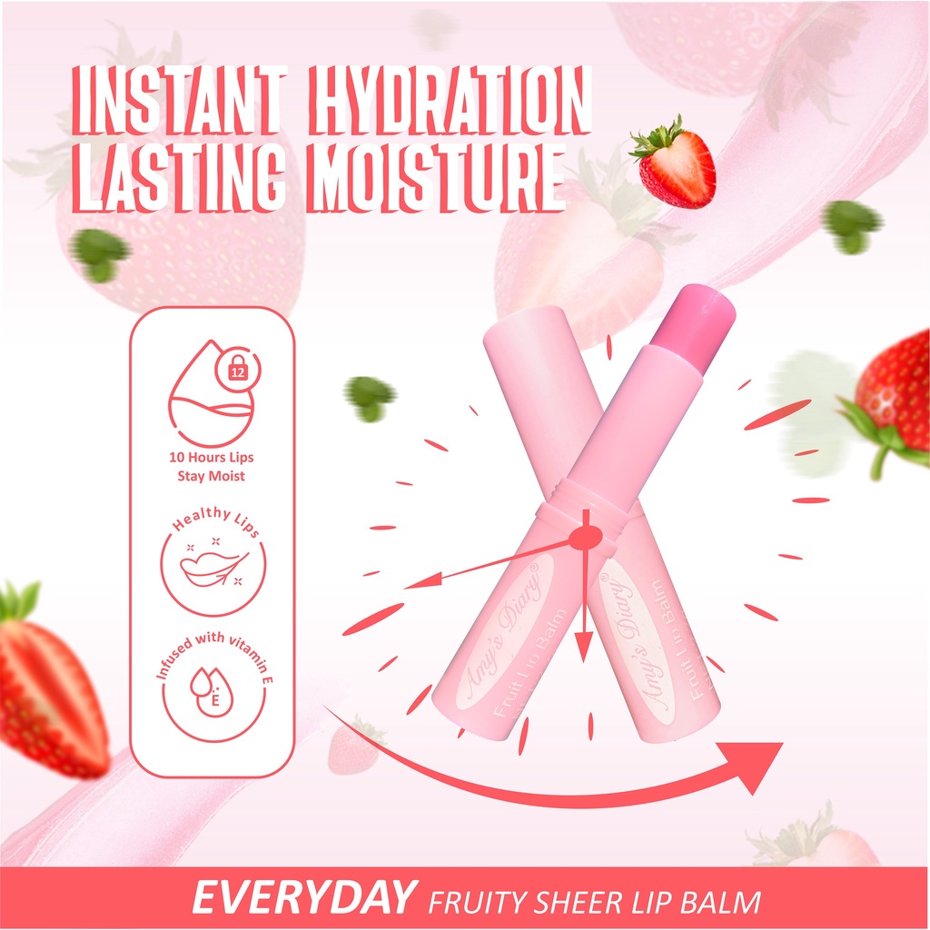 AMY'SDIARY Lip Balm Fruity Sheer Strawberry Moist Lip Care Pelembab Bibir