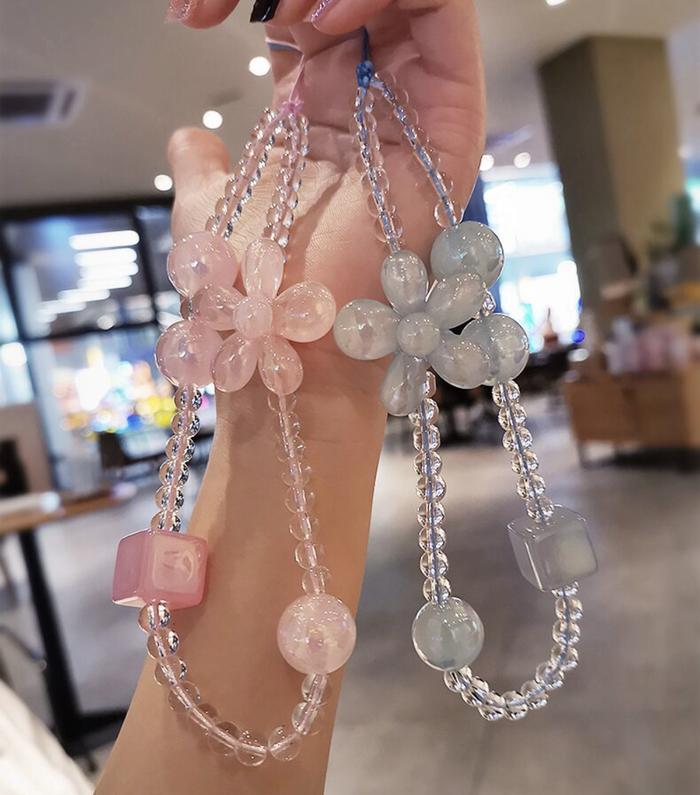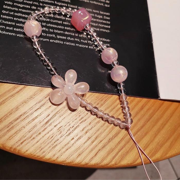 FLASH SALE TALI RANTAI HP MOTIF BUNGA MANIKMANIK UNIVERSAL LANYARD PINK