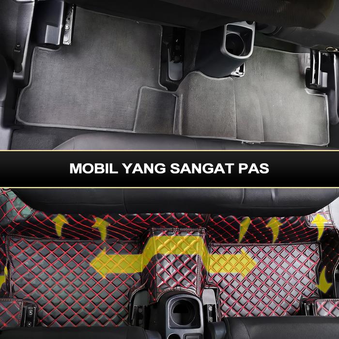 PROMO TERBATAS [GRATIS ONGKIR]SOARFLY UNIVERSAL CAR MATS KARPET MOBIL LEATHER 5 PCS UNIVERSAL KULIT WATERPROOF PREMIUM HITAMMERAH