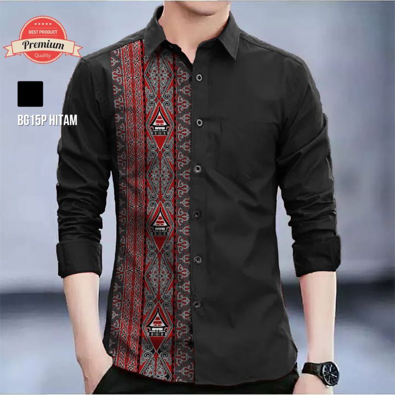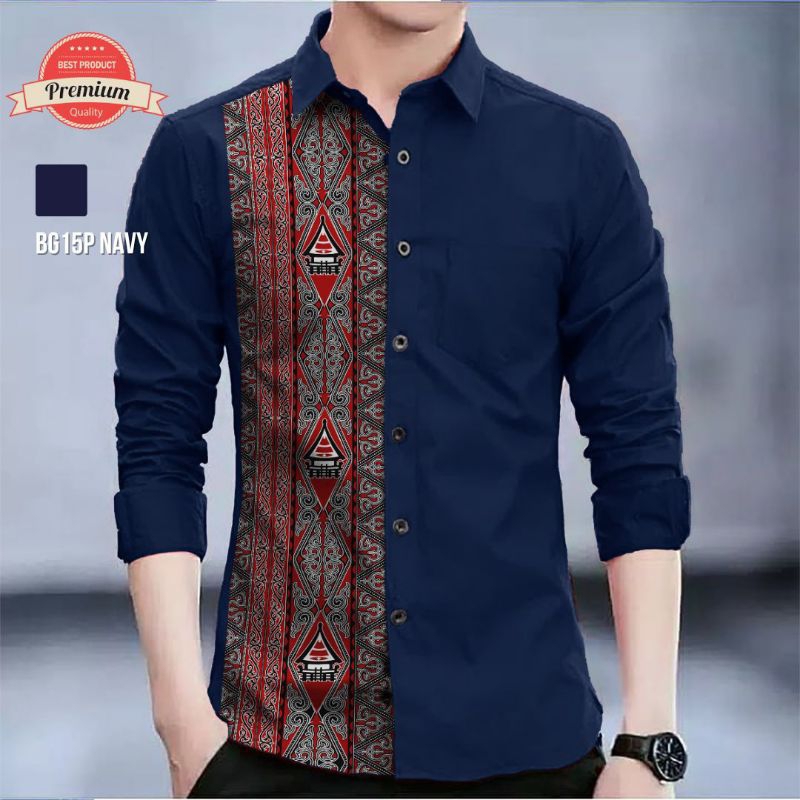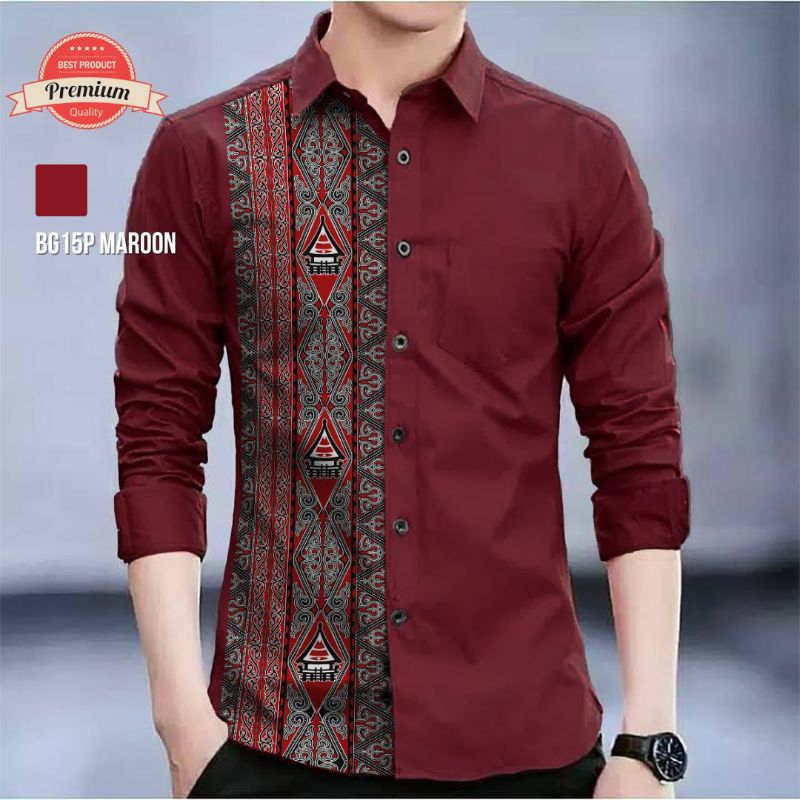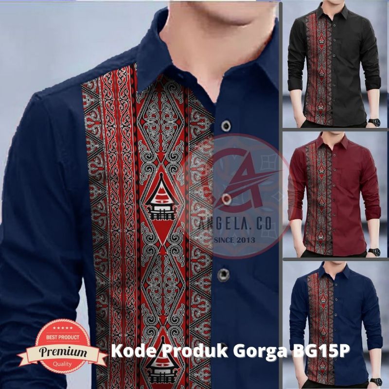 Angelaco | Kemeja Batik Batak Lengan Panjang Pria | Batik Pria Motif Gorga BG15
