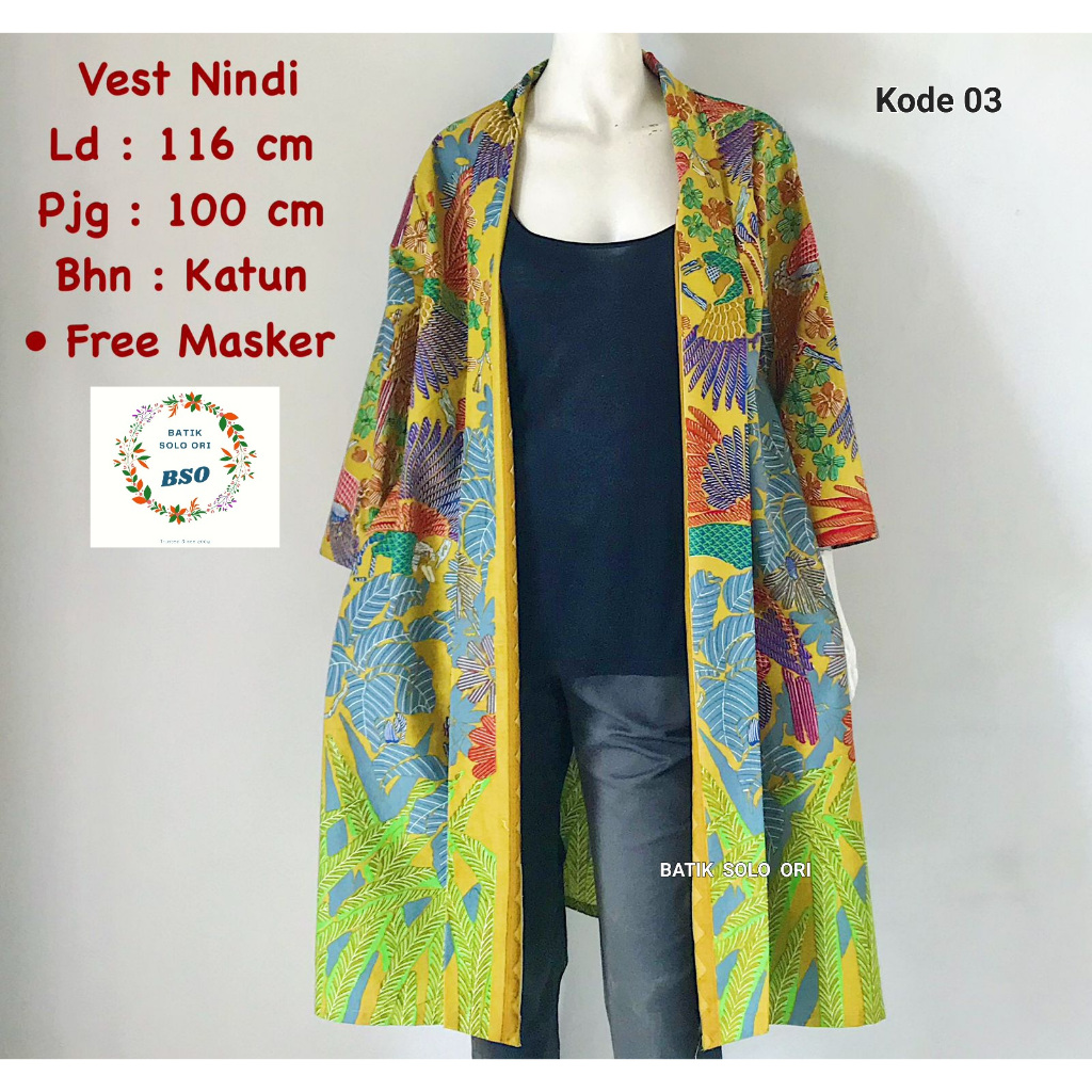 BATIK SOLO ORI. Blazer Batik Wanita Jumbo Vest Nindi. Vest Nindi Jumbo. Long Cardi Batik Muslimah jumbo terbaru 2024. by