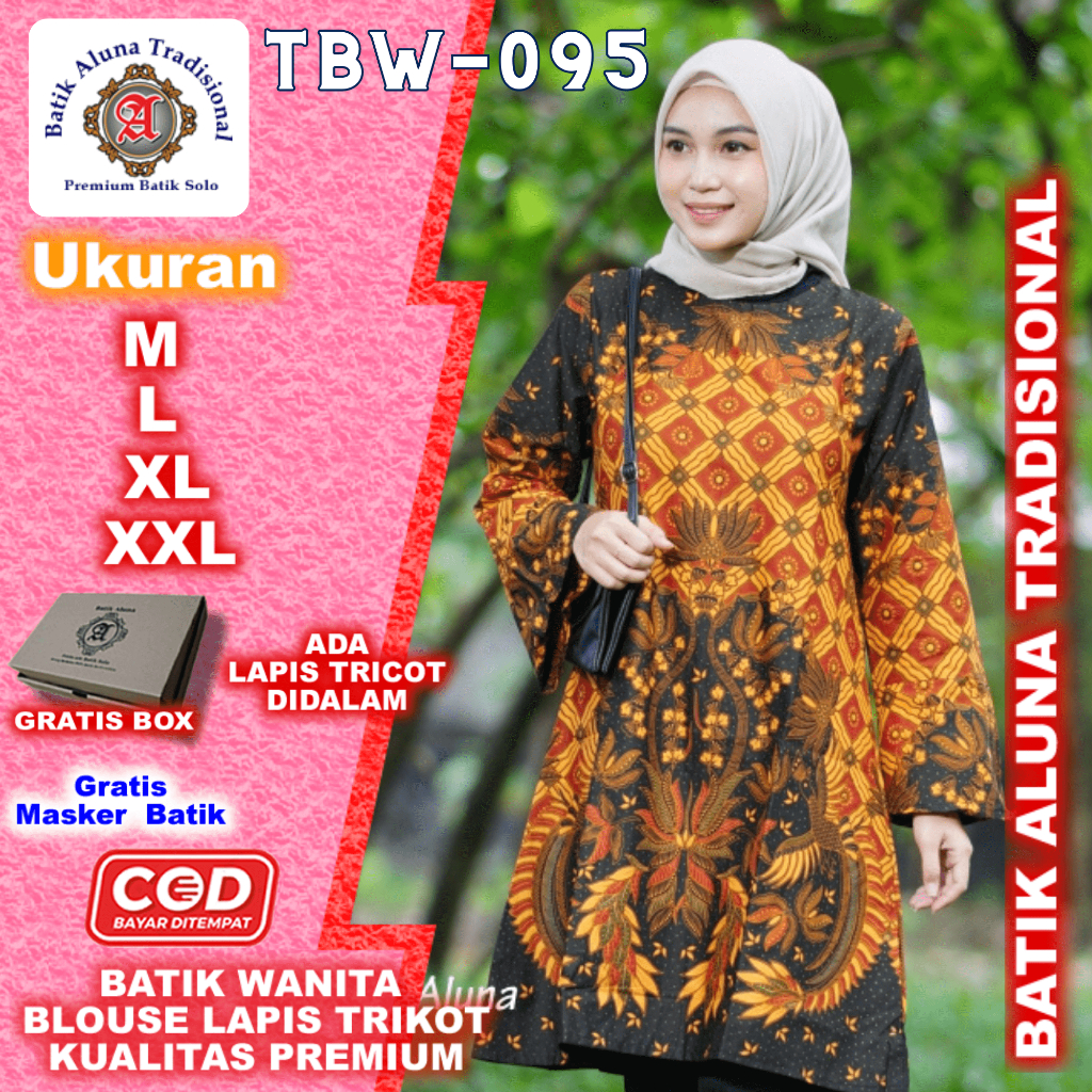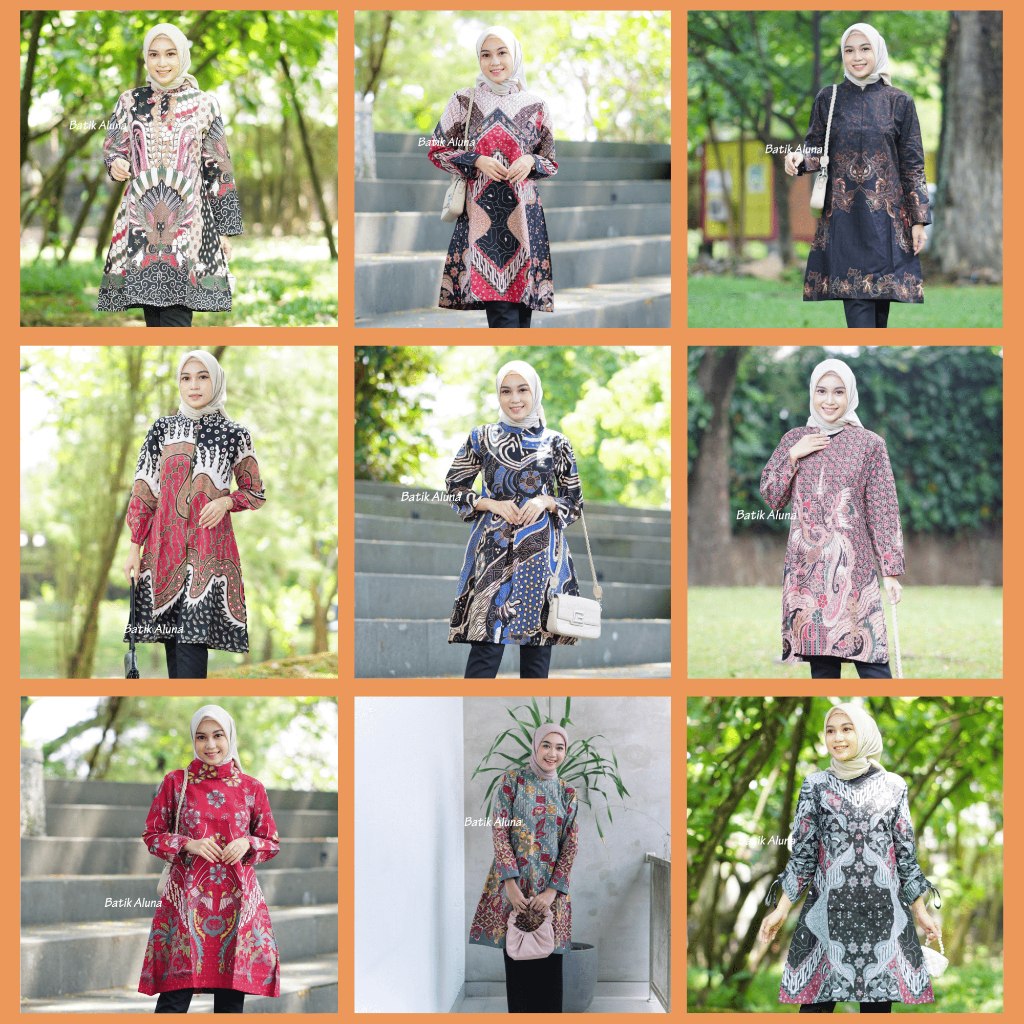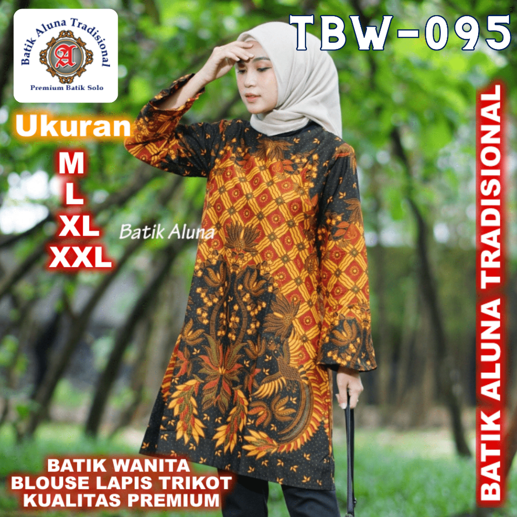 Baju Batik Wanita Tunik Lengan Panjang Full Furing Premium Aluna TBW 095