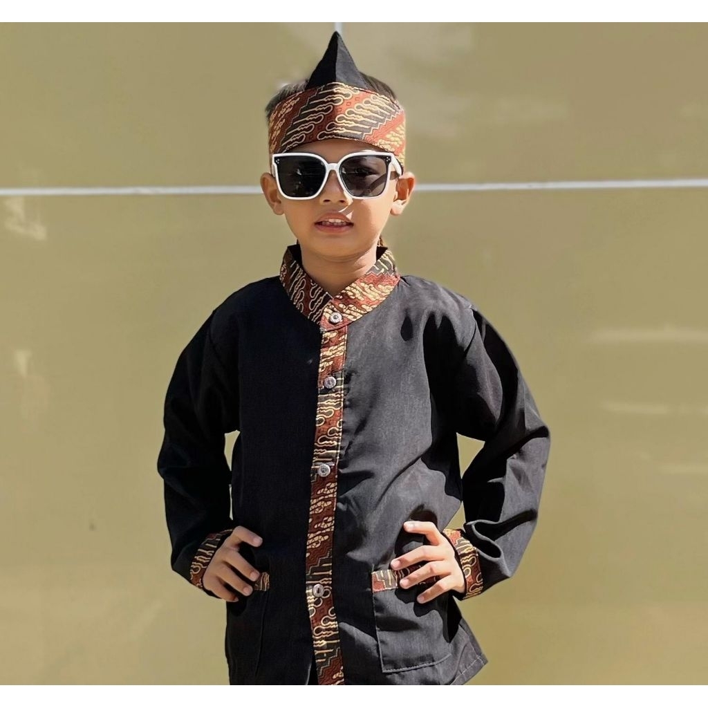Baju setelan pangsi anak gratis iket kepala motif batik coklat