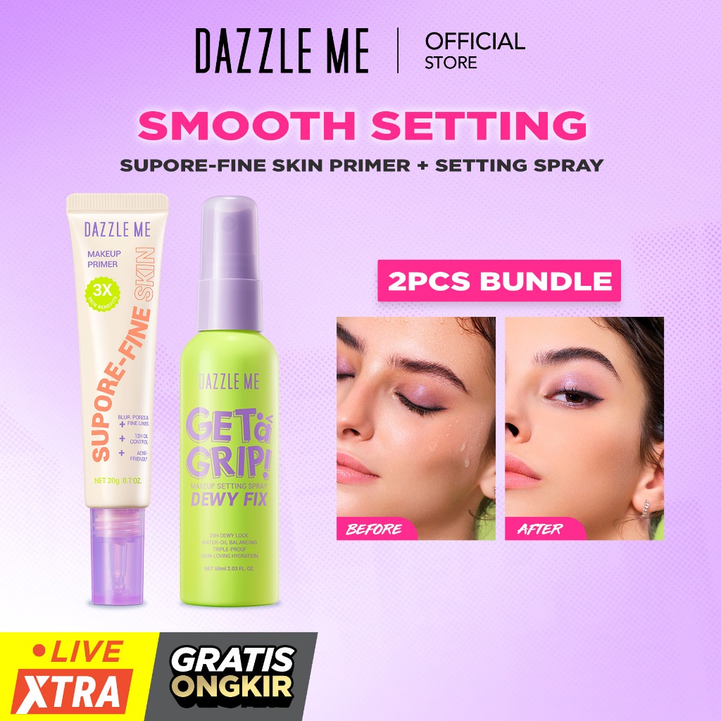 [BEST DEALS] DAZZLE ME Smooth Setting Bundle Set Primer Halus dan Setting Spray untuk Makeup Sempurna Tampilan Awet Seharian Tahan Lama Setting Spray Dewy Matte Acne Aerosol Anti Polusi