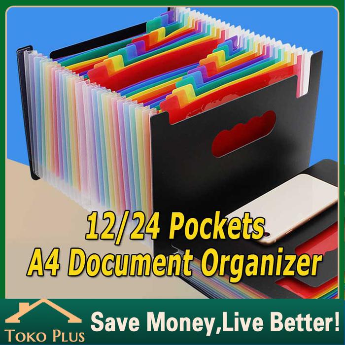 TERLARIS 1224 POCKETS EXPANDING FILE FOLDER A4 MAP DOCUMENT ORGANIZER HOLDER 12