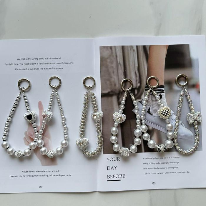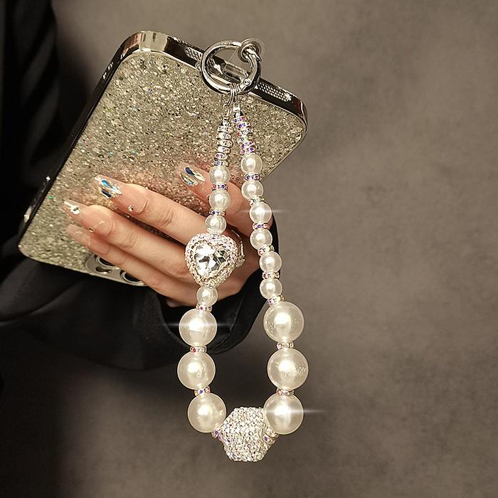 FLASH SALE RANTAI PONSEL BERLIAN MUTIARA GAYA KOREA KRISTAL DIAM0ND UNIVERSAL TALI GANTUNGAN HP LANYARD 1 MUTIARA HATI H