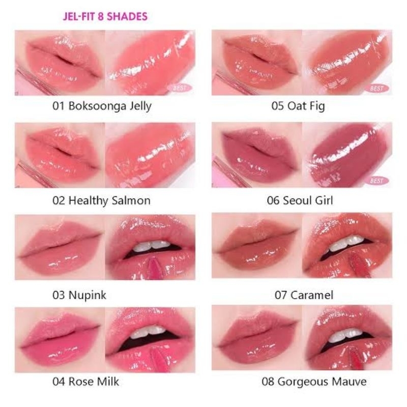 10 FIG JAM, 01 BOKSOONGA JELLY, 05 OAT FIG, 07 CARAMEL, 03 NU PINK, 09 NARCISM
