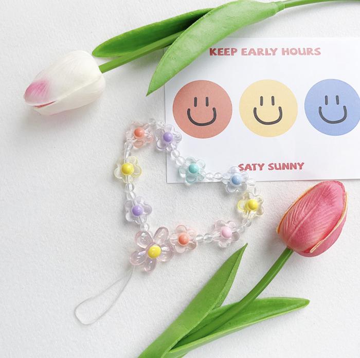 FLASH SALE TALI RANTAI MANIKMANIK BUNGA UNTUK UNIVERSAL TALI HP LANYARD PINK