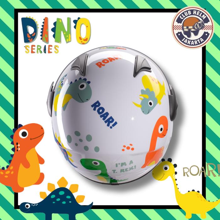 PROMO TERBATAS HELM ANAK JUNIOR KARAKTER DINOSAURUS DINOSAUR DINO PUTIH SUPERMAN
