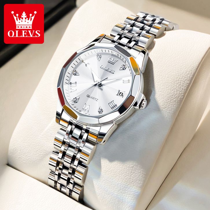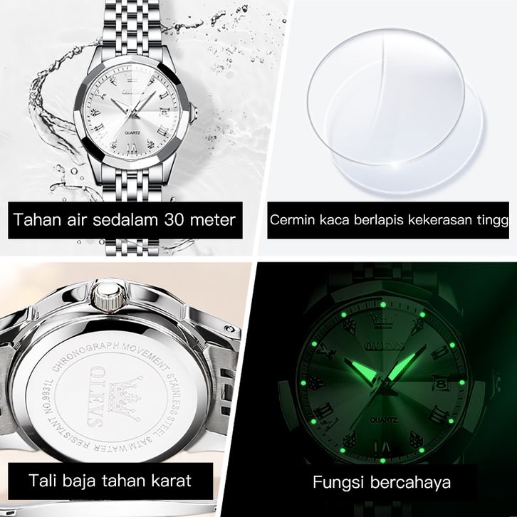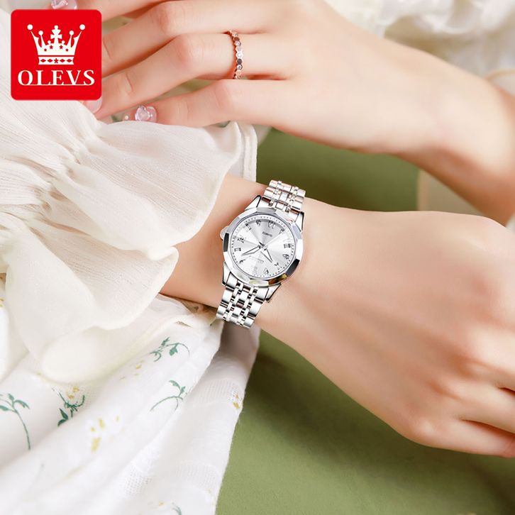OLEVS Jam Tangan Wanita Anti Air Original Cewek Kalender Bercahaya Analog Luminous Stainless Steel