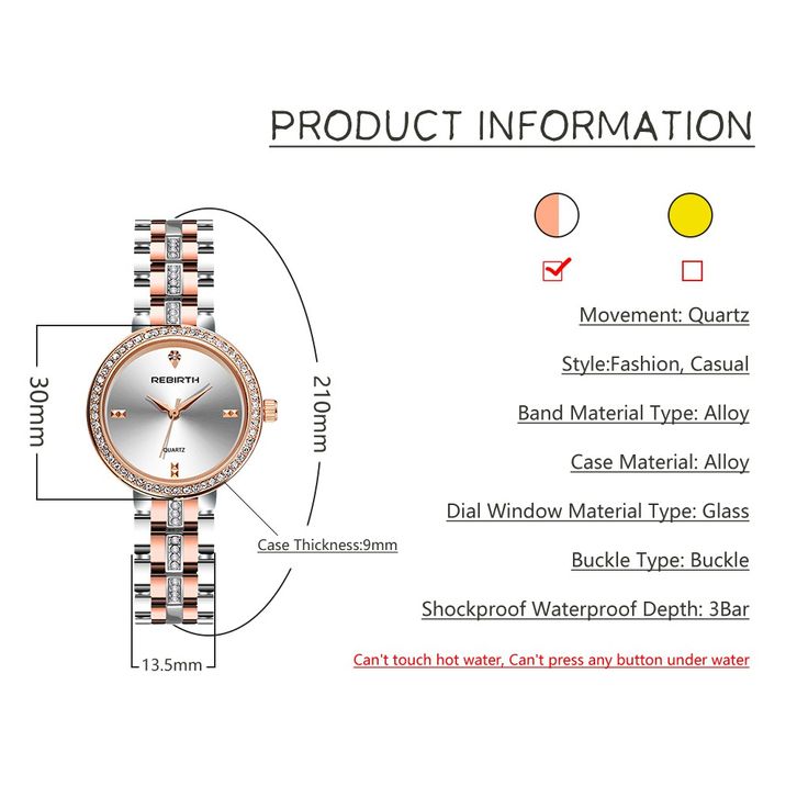 REBIRTH Jam Tangan Wanita Mewah Kuarsa Tali Stainless Steel Jam Wanita Anti Air Jam Tangan Cewek