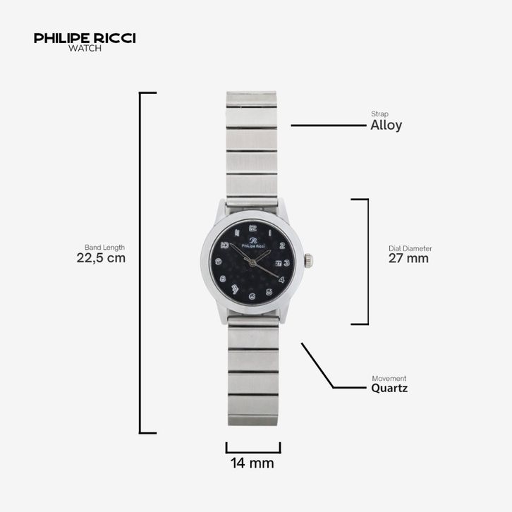 PhiLipe Ricci Jam Tangan Wanita Kecil Rantai Kekinian Bulat Strap Tali Besi Model Kekinian Simpel