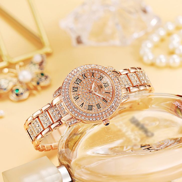 AOKEYO F008 Jam Tangan Wanita Diamond Rose Gold Analog Fashion Casual Women Strap Steel Quartz Watch