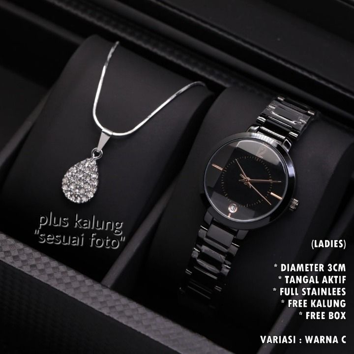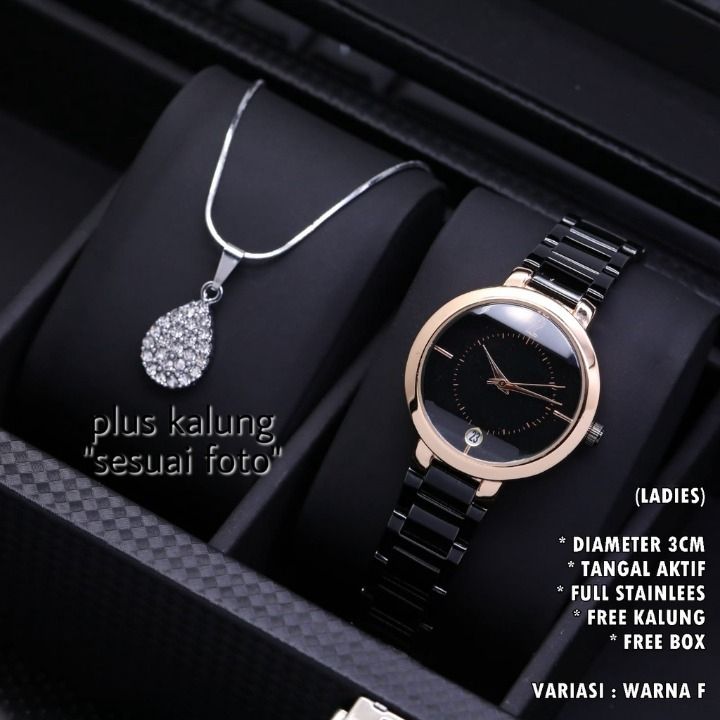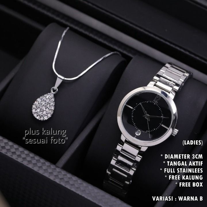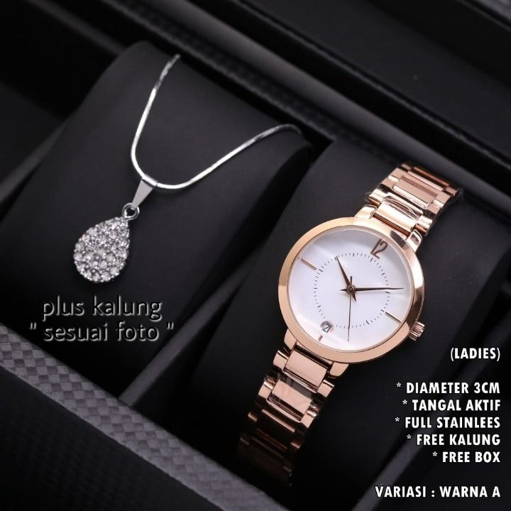 JAM TANGAN WANITA FASHION RANTAI BODY BULAT BELIMBING TANGGAL AKTIF FREE KALUNG