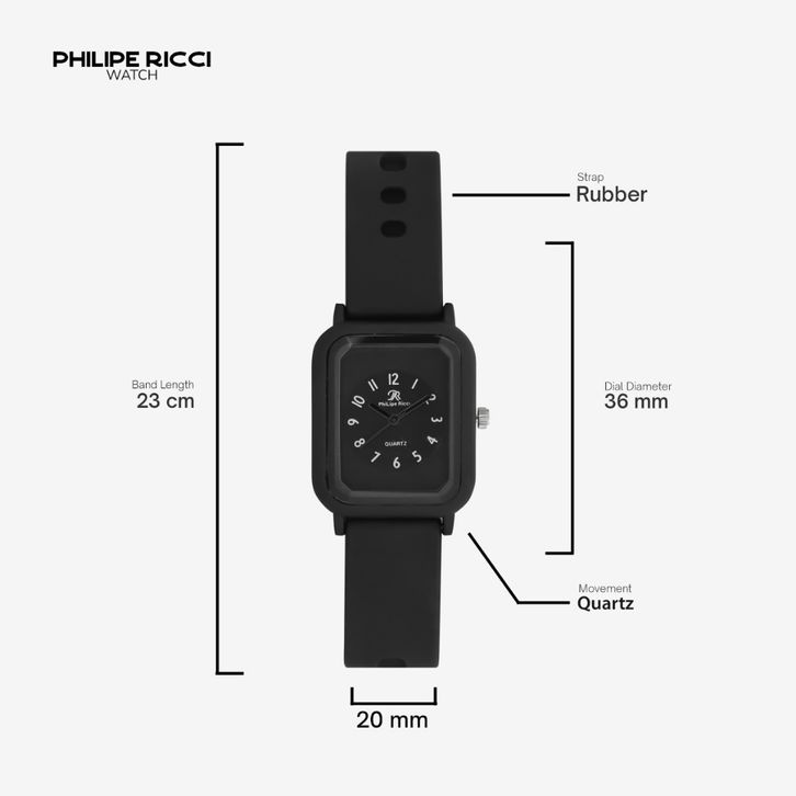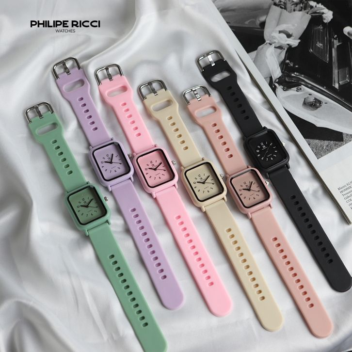 PhiLipe Ricci Jam Tangan Wanita Strap Karet Dial Kotak Terbaru Model Minimalis Fashion Stylish 6245
