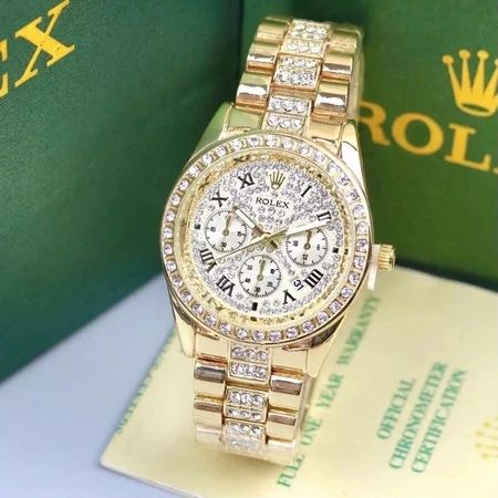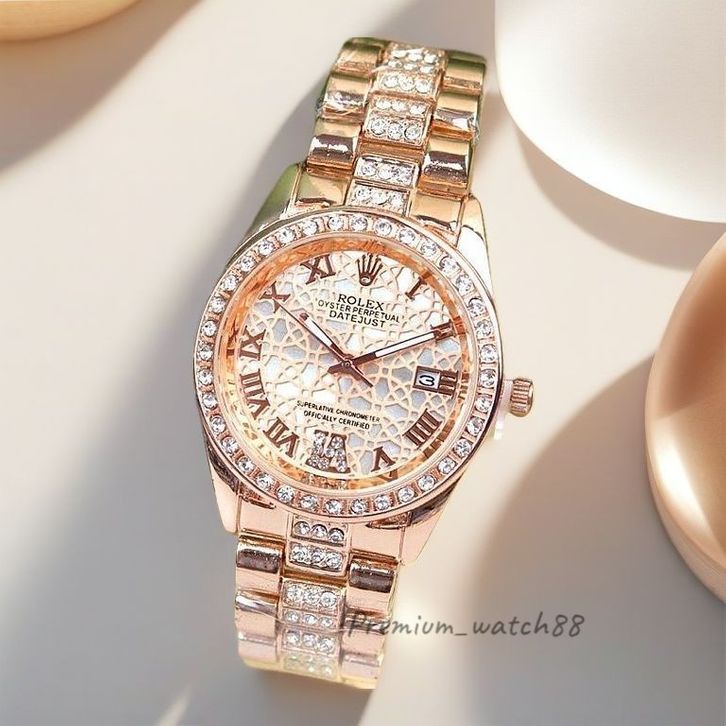 Jam Tangan Wanita R722 Rantai Madu 2 Varian Tanggal Aktif Free Box & Baterai Cadangan