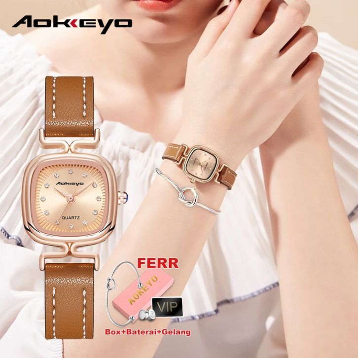 AOKEYO Jam Tangan Wanita Original Korea Retro Anggun Kuarsa Berlian Jam Tangan Cewek