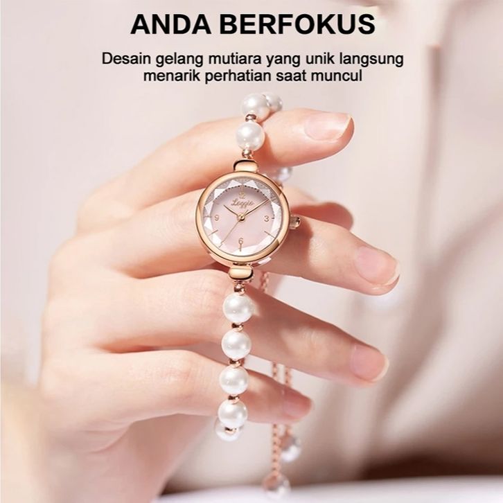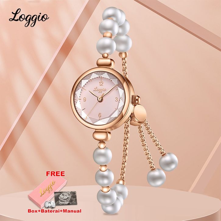Loggio Jam Tangan Wanita Anti Air Tali Gelang Mutiara Korea Elegan Jam Tangan Cewek Original Dapat