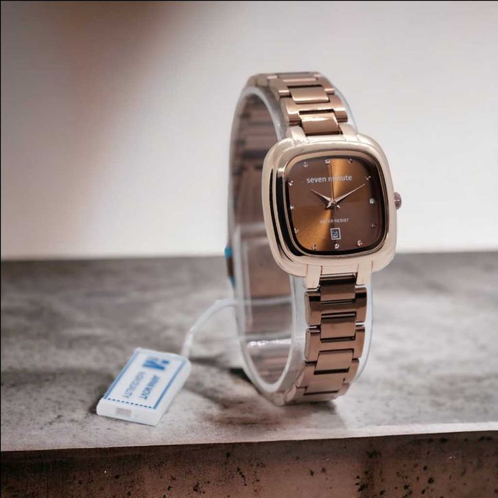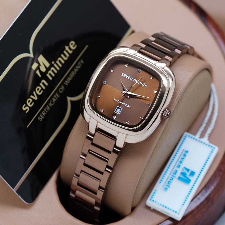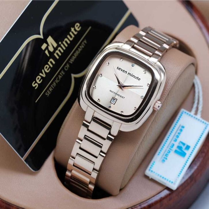 Jam Tangan Wanita Seven Minute-M753 Original Tali Rantai Free Kartu Body Segi Tanggal Aktif Box