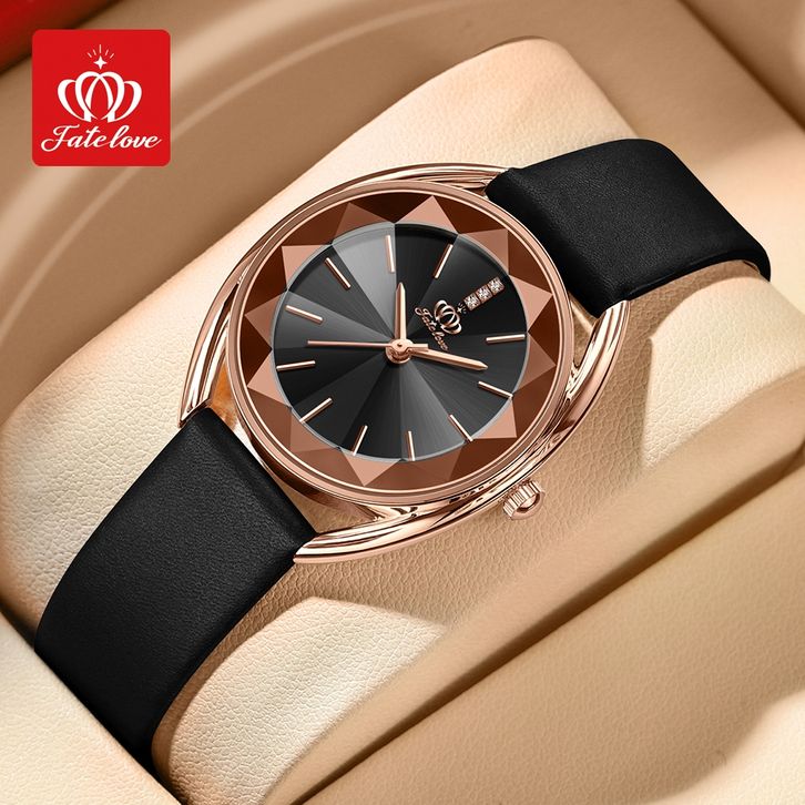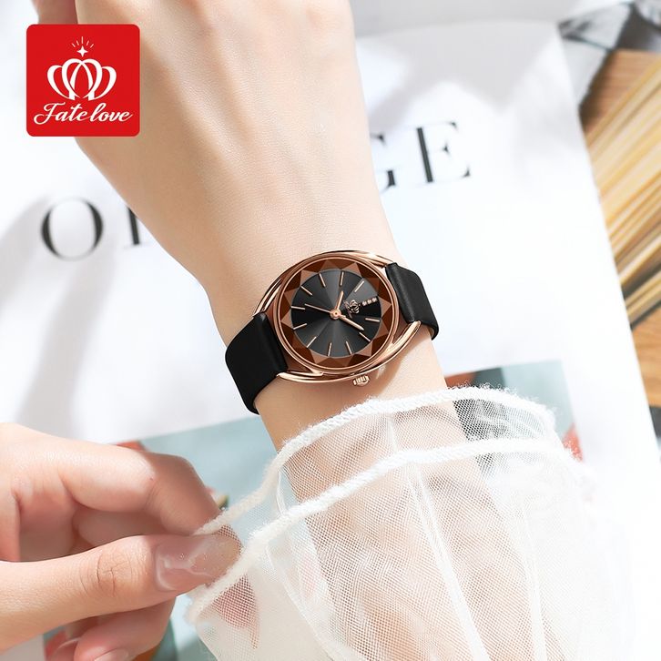 Fate Love Jam Tangan Wanita Anti Air Original Terbaru Cewek Compact Luxury Kulit Hitam Putih Fashion