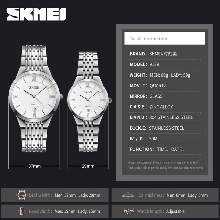 Jam Tangan Wanita Analog Skmei 9139 Silver White Water Resistant 30M