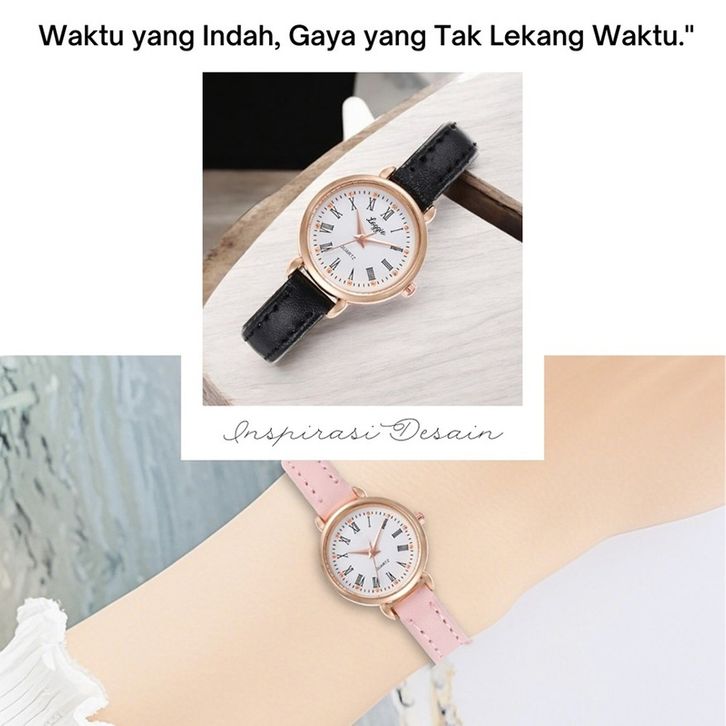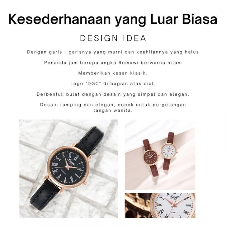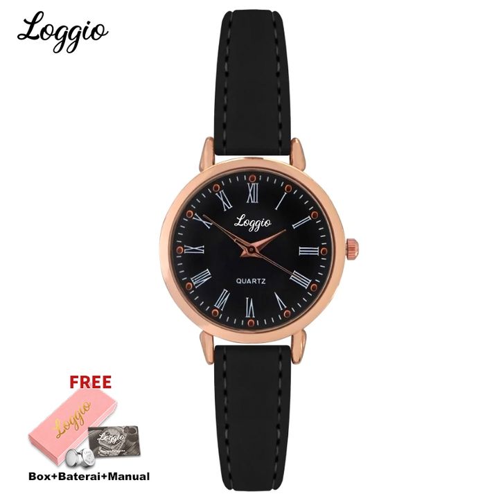 Loggio Jam Tangan Wanita Kulit Hitam Women Watches Bulat Kecil Terbaru Original Free Box