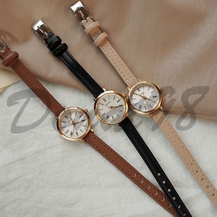 Jam Tangan Jhui Kecil Wanita Analog Dial Bulat Dengan Strap Pu Leather