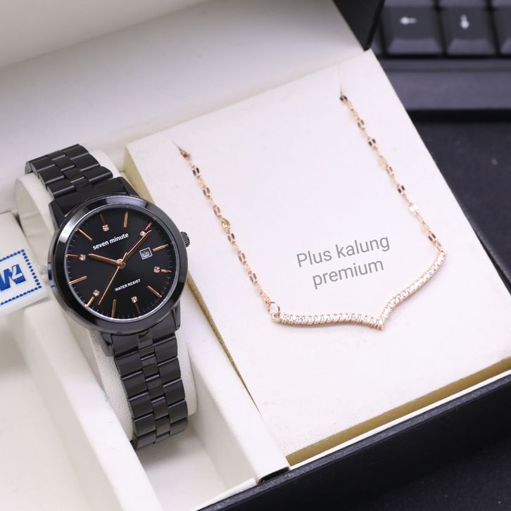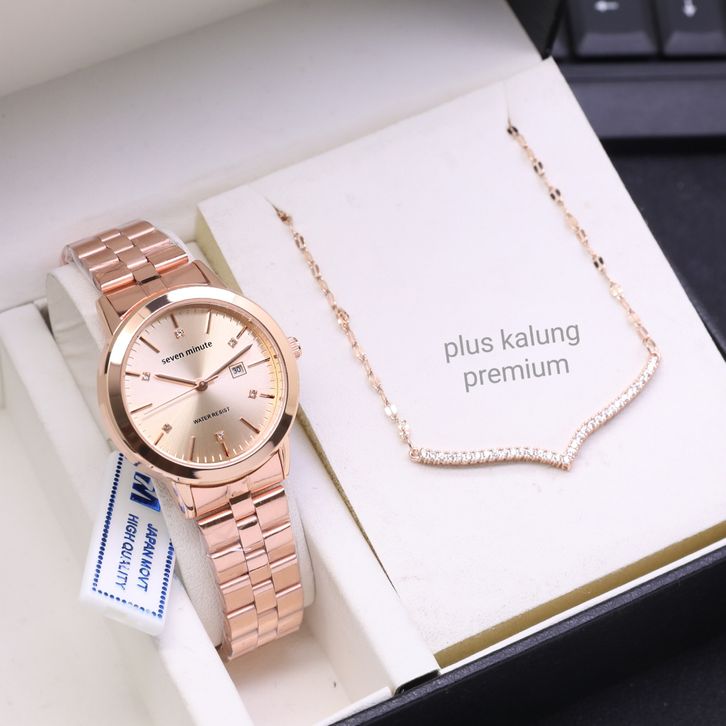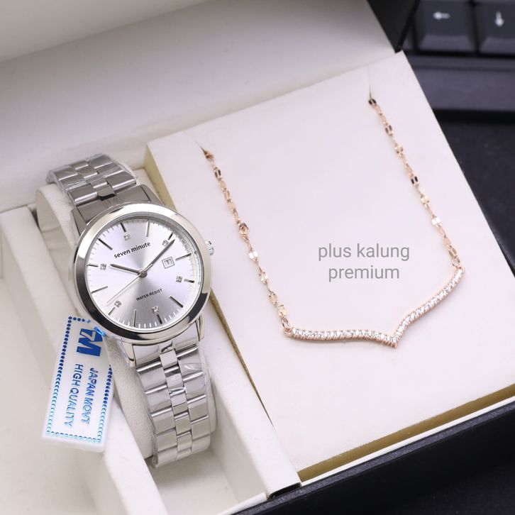 Jam tangan wanita seven minute original M705 plus kalung bundling analog cewek premium