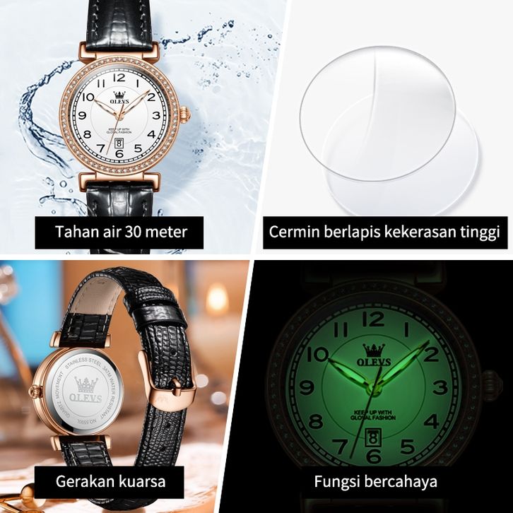 OLEVS Jam Tangan Wanita Anti Air Original Terbaru 2025 Unik Luxury Kulit Kalender Analog Date