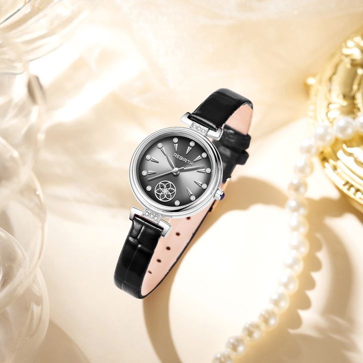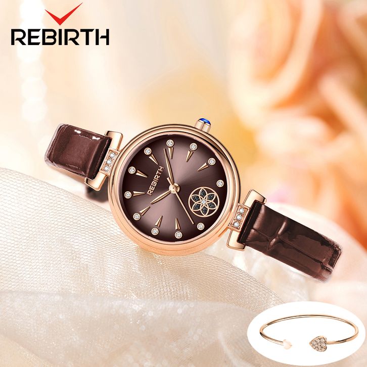 REBIRTH Jam Tangan Wanita Berlian Anggun Anti Air Kuarsa Tali Kulit Gaya Korea Jam Tangan Cewek