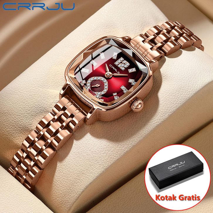 CRRJU Jam Tangan Wanita Original Persegi Kecil Tali Stainless Steel Quartz Anti Air Fashion Korea