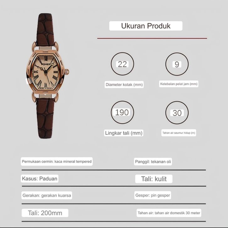 POMER Jam Tangan Wanita Klasik Anti Air Mode Display Kuarsa Santai Jam Tali Kulit Tahan Air Jam