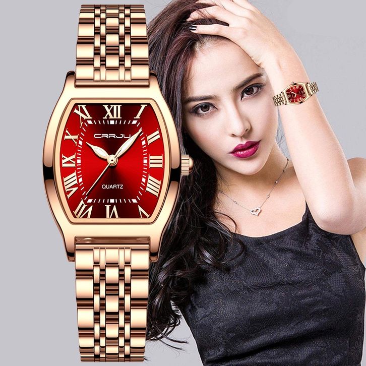 CRRJU Jam Tangan Wanita Original Anti Air Kuarsa Analog Stainless Steel Terbaru 2024 Arloji Cewek