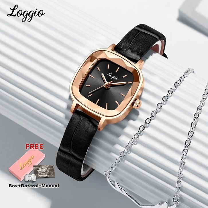 Loggio Jam Tangan Wanita Kecil Jam Original Jam Tangan Cewek Anggun Santai Square Dial Tali Kulit