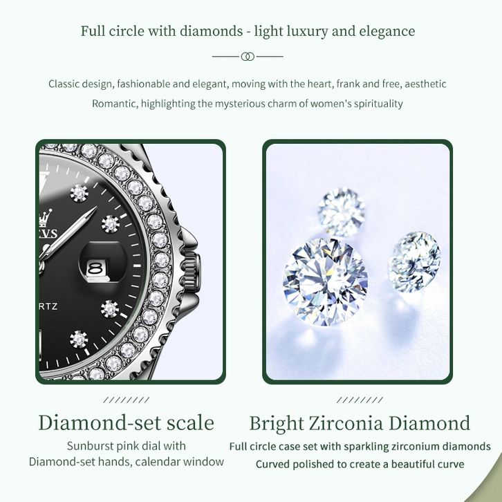 OLEVS Jam Tangan Wanita Anti Air Original Stainless Steel Cewek Luminous Kalender Analog Women Watch