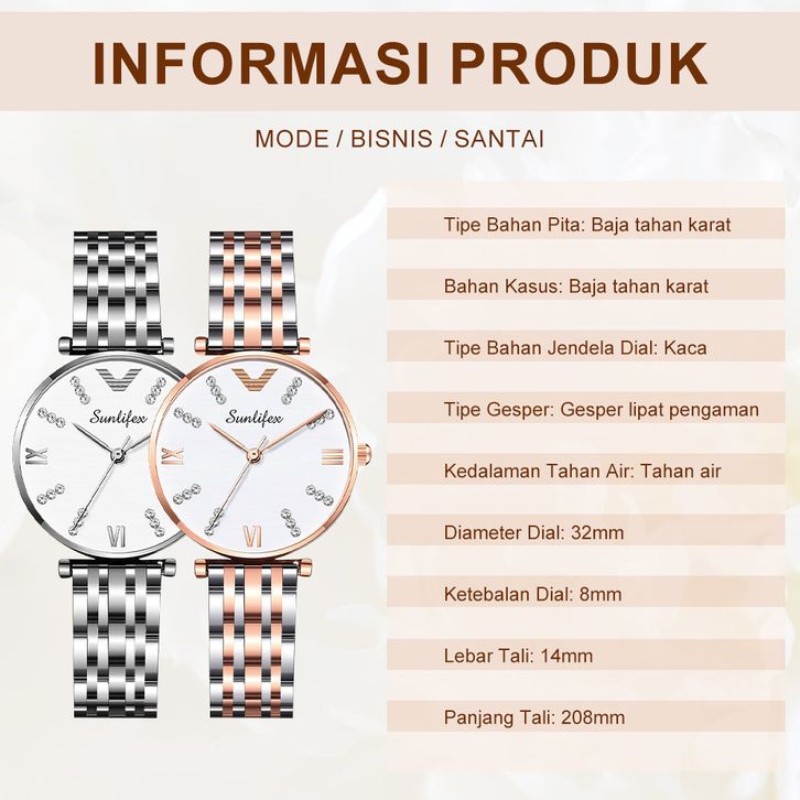 Sunlifex Jam Tangan Wanita Berlian 9018 Original Anggun Santai Wanita Tali Stainless Steel Jam