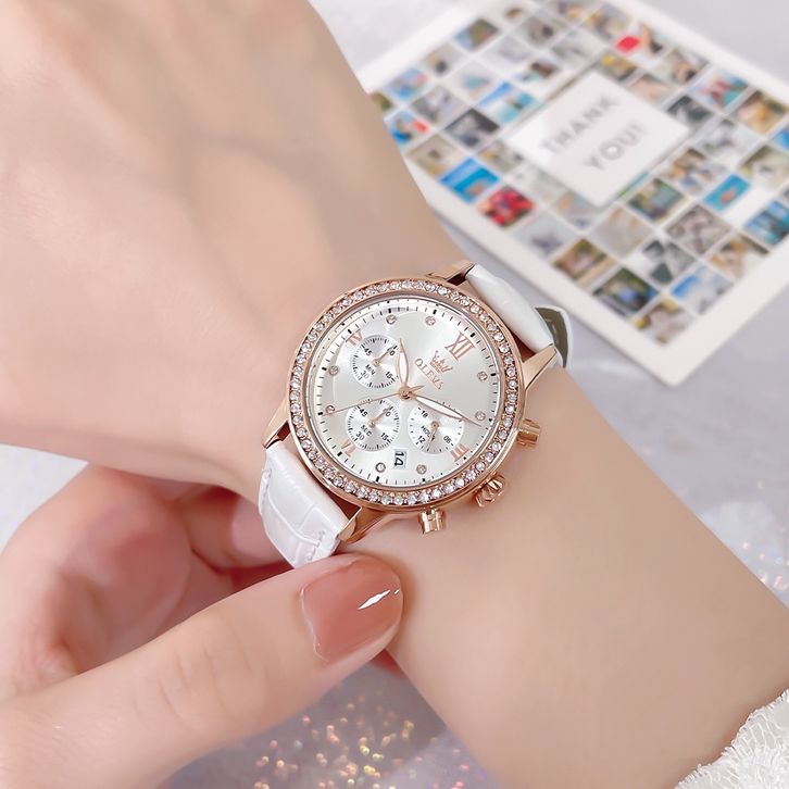 OLEVS Jam Tangan Wanita Anti Air Anak Perempuan Kecil Original Kulit Korea Casual Putih Chrono Aktif