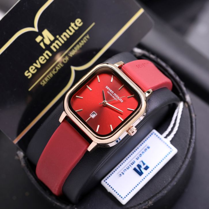 SEVEN MINUTE M756 rubber Jam tangan wanita original segi kekinian quartz tanggal tahan air water