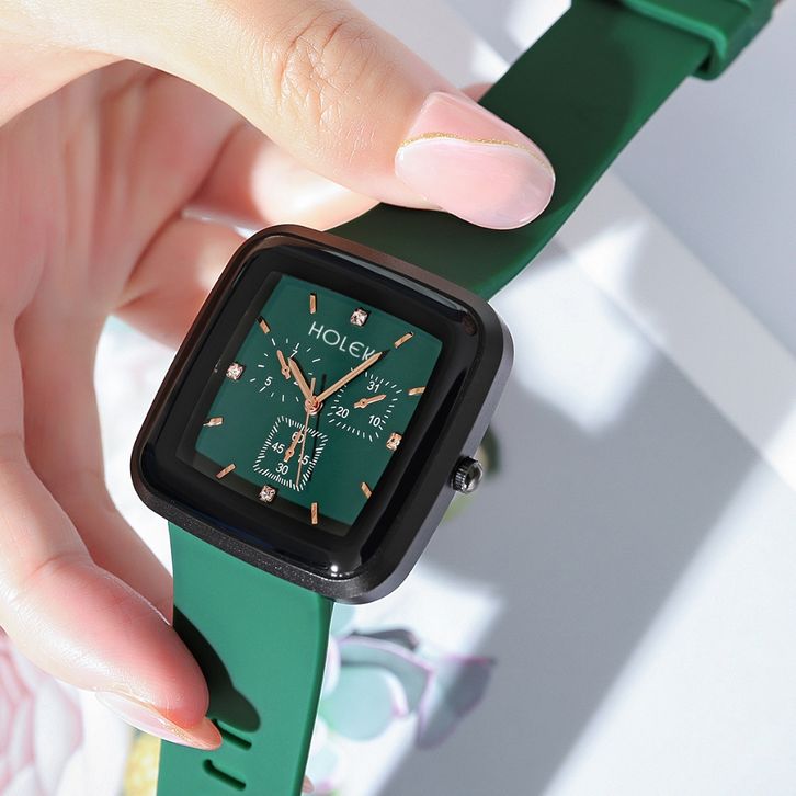 HOLEK 51065 Jam Tangan Wanita Anti Air Elegan Mewah Tali Silikon Quartz Terbaru Jam Tangan Cewek