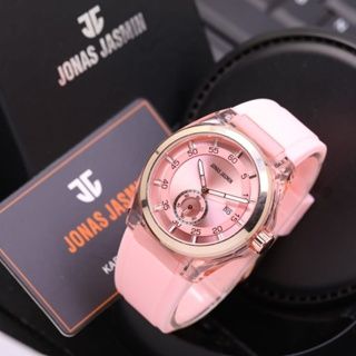 Jam Tangan Wanita Jonas Jasmin 5319 Tali Rubber Free Kartu Body Transparan Chrono&Tanggal Aktif