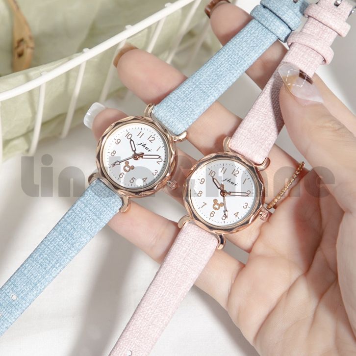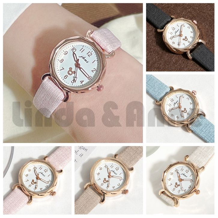 Jam Tangan Wanita Jhui Harajuku Motif Minnie Analog Quartz Strap Pu