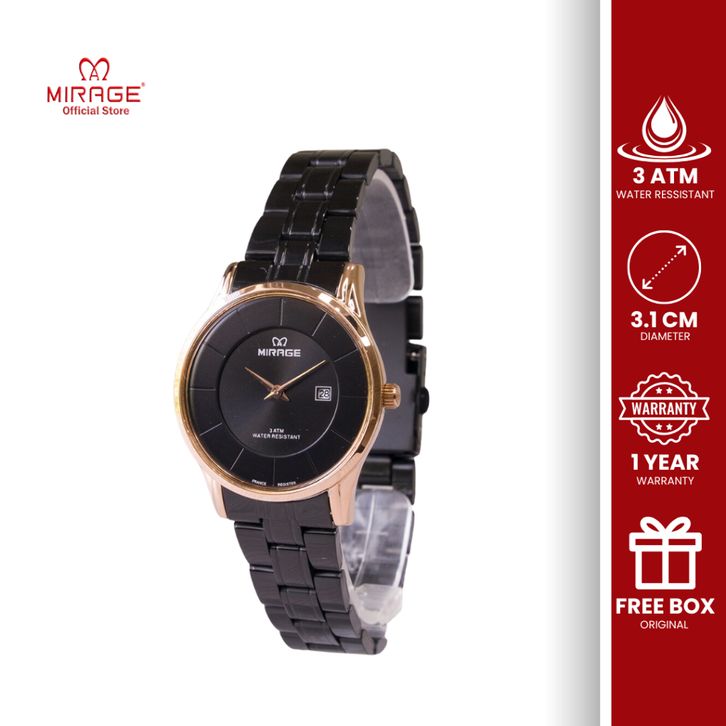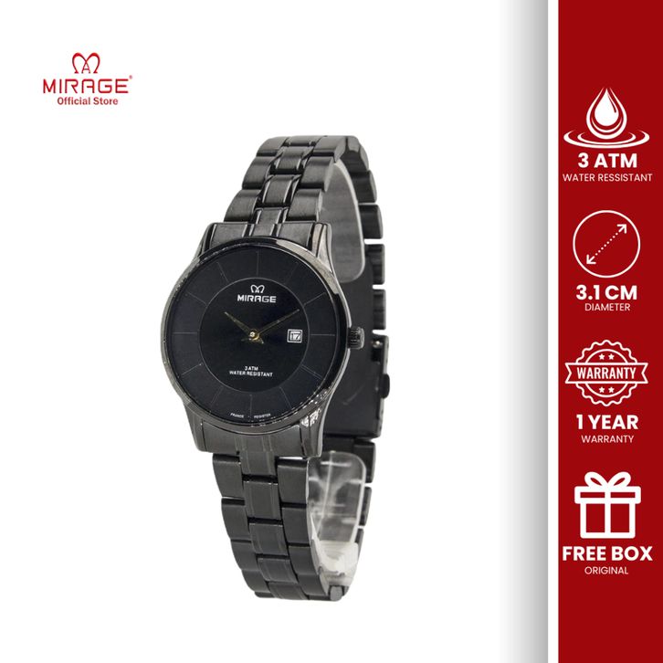 Mirage Jam Tangan Wanita Analog Hitam 8670 L Tanggal Aktif 2 Jarum Klasik Stainless Anti Luntur