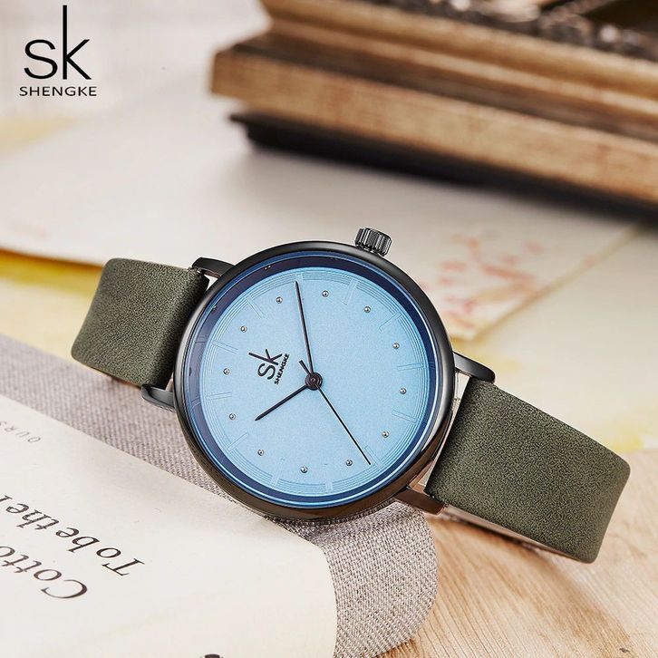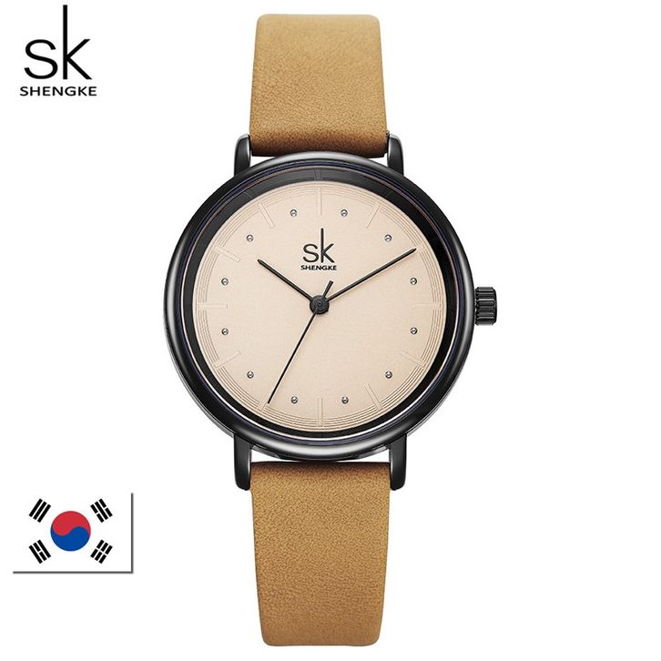 SHENGKE 8005 Jam Tangan Wanita Analog Tali Kulit Casual Korean Design CURRENOS