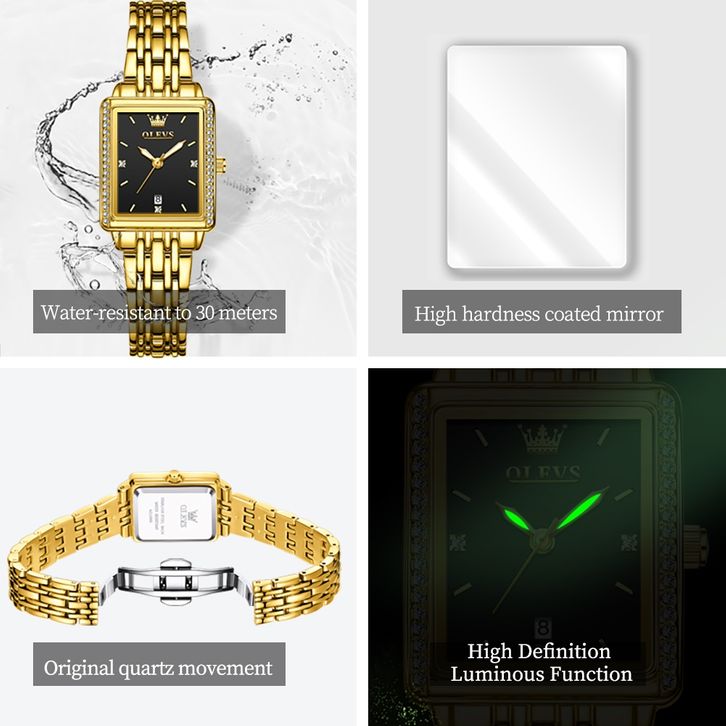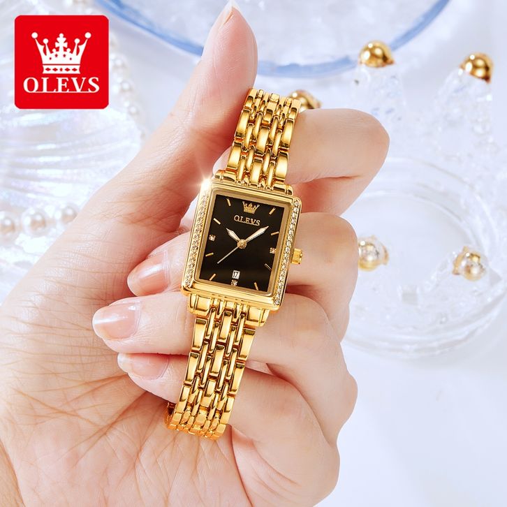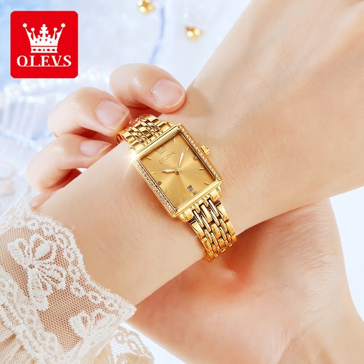 OLEVS Jam Tangan Wanita Anti Air Original Asli Terbaru 2025 Kekinian Kecil Elegan Gold Analog