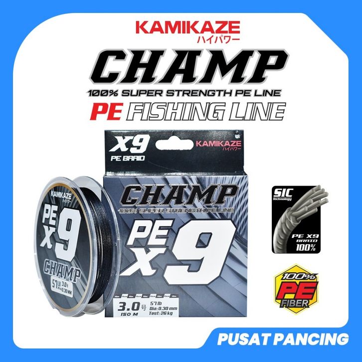 Senar Pancing Anti Keriting PUSATPANCING5 - Senar Pancing Kamikaze Champ X9 150MTR Black SIC Technology X9 Braide 100